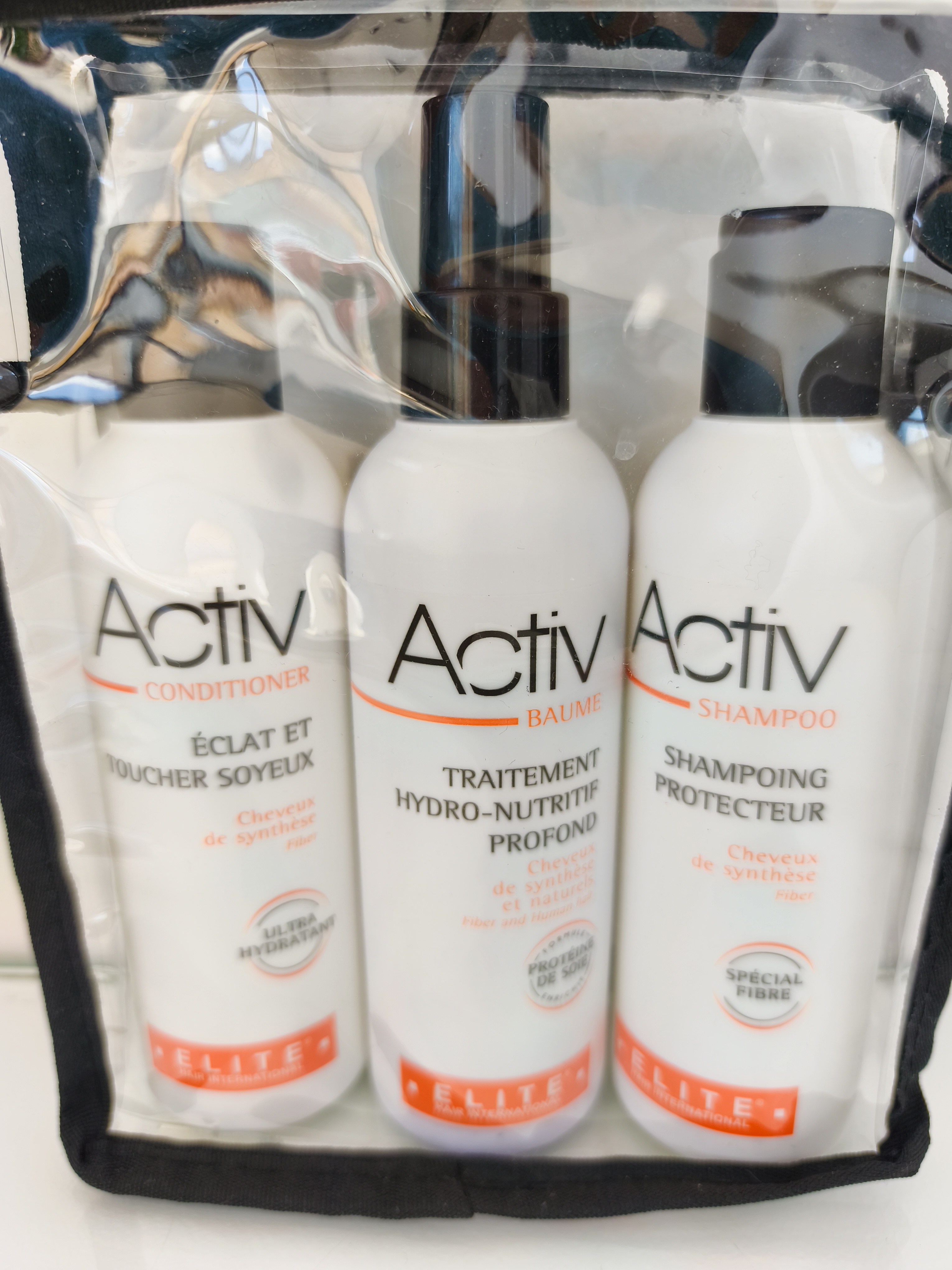 Shampoing, après shampoing et spray coiffant Elite Hair International